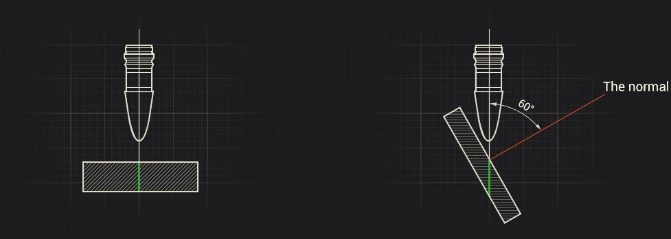The deviation from the normal is the so-called impact angle which determines the effective armor thickness. It is the actual armor thickness the shell must plow through in order to penetrate and deal damage. The greater the impact angle, the greater the effective thickness of the armor.