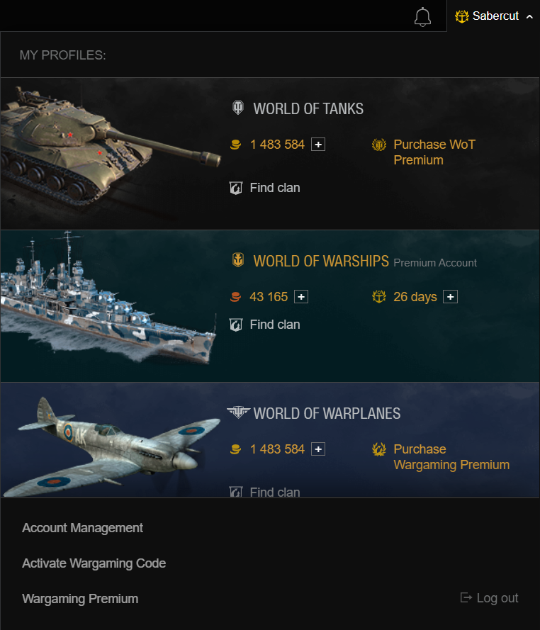 2. Click on your username in the upper-right corner of the screen and select Activate Wargaming Code from the dropdown menu.
